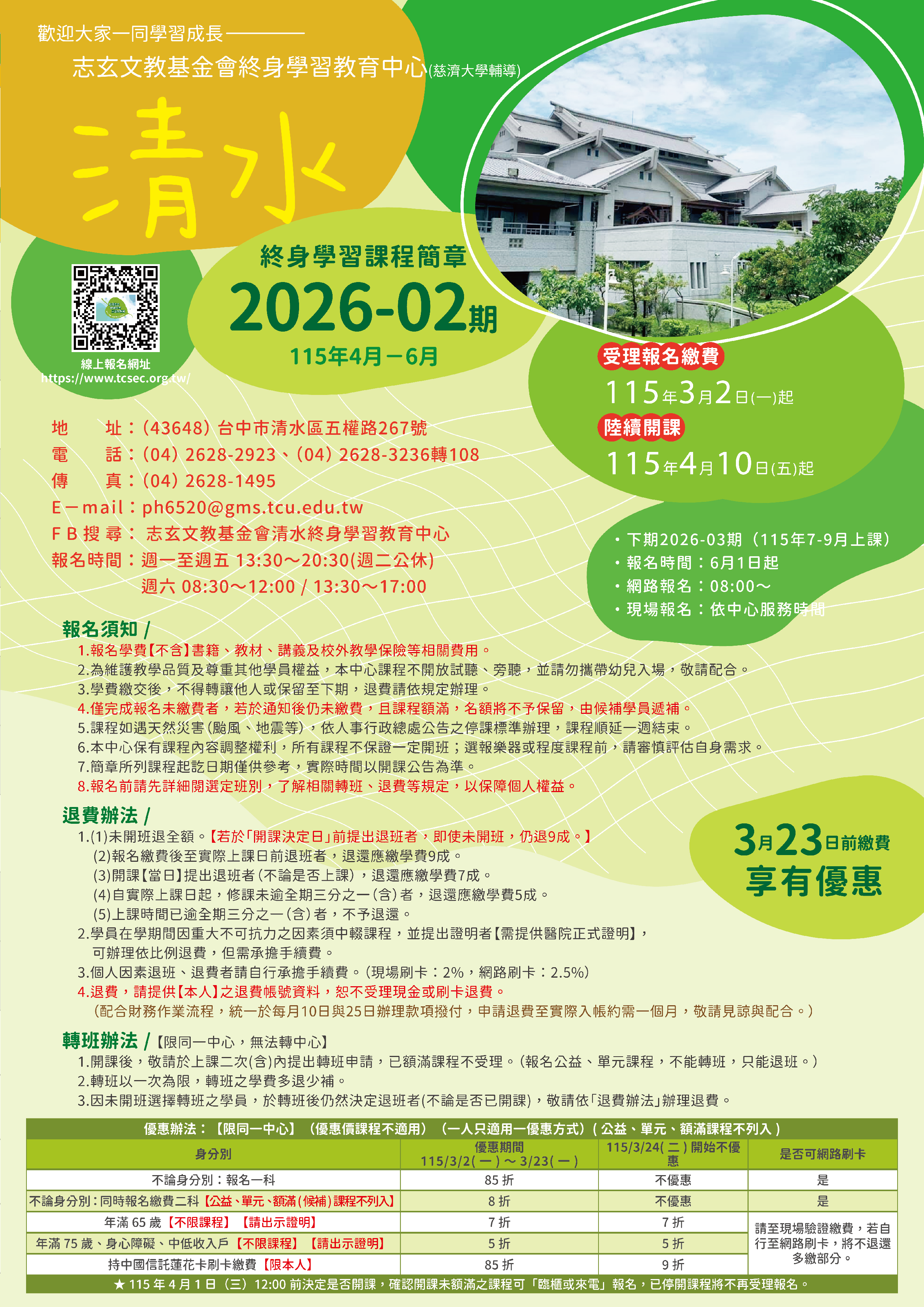 | 13 | CS1152-0211 | 慈樂飄揚 | 星期二 | 19:30 -21:00 | 招生中 | 04/14 | |