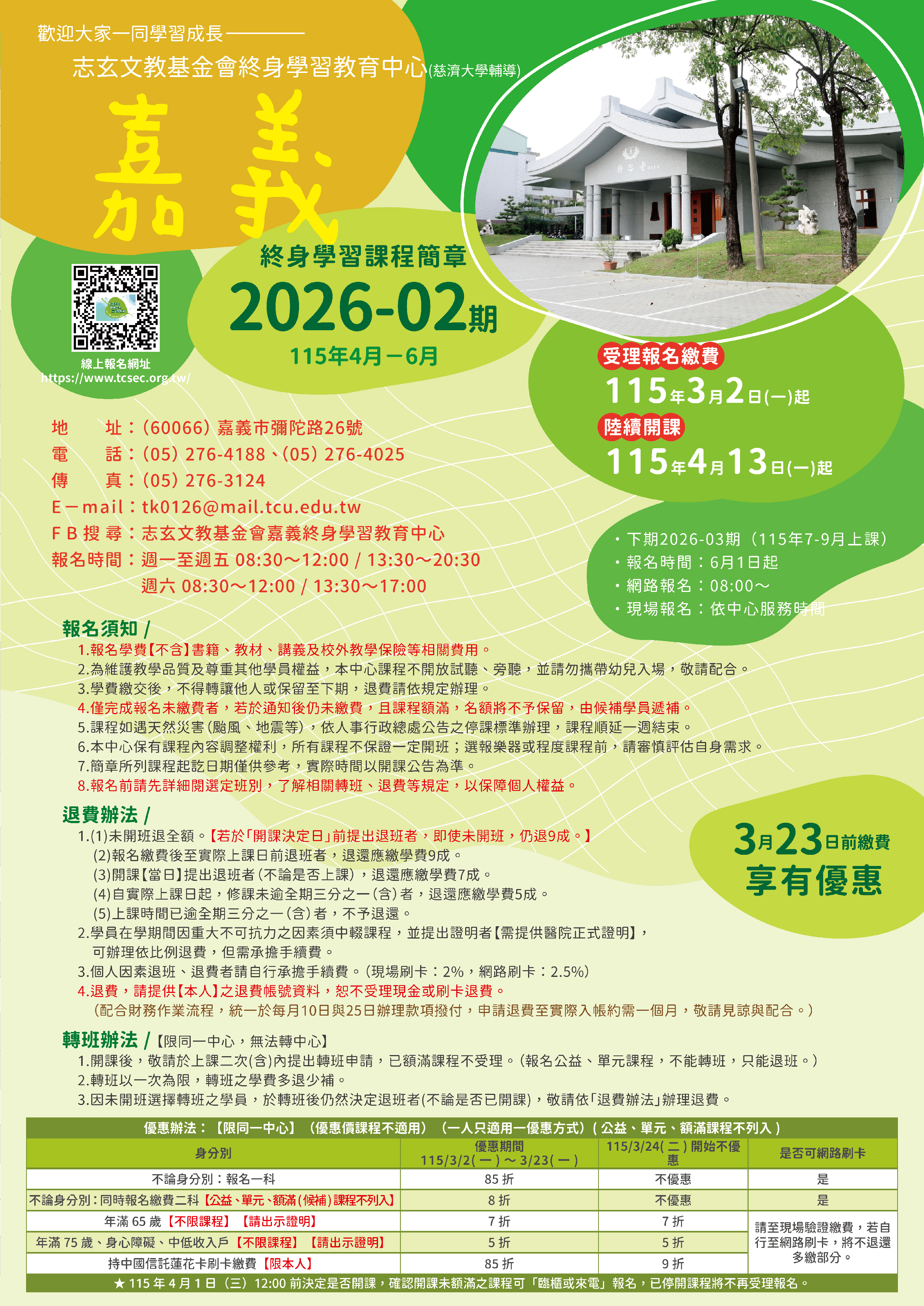 | 13 | CY1152-0210 | 靜思花道【大林民眾專班】 | 星期四 | 18:30 -20:30 | 招生中 | 04/16 | |